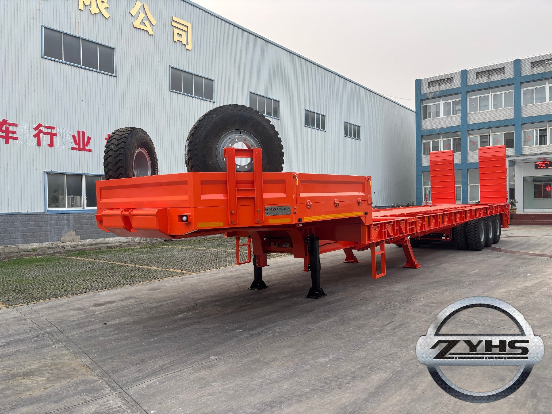 Low tablets are specialized transport vehicles designed for heavy and oversized equipment, characterized by their low cargo bed height (typically 30-80 cm). Constructed with high-strength steel welded frames and multi-axle support structures, they can handle loads ranging from tens to hundreds of tons, accommodating excavators, road rollers, large structural components, and similar equipment. The deck features no side rails, facilitating crane loading/unloading or horizontal shifting of cargo. Some models incorporate hydraulic outriggers for enhanced stability. Widely used in infrastructure projects, heavy machinery transport, and wind turbine equipment relocation, these trailers solve challenges associated with transporting oversized and overweight cargo.